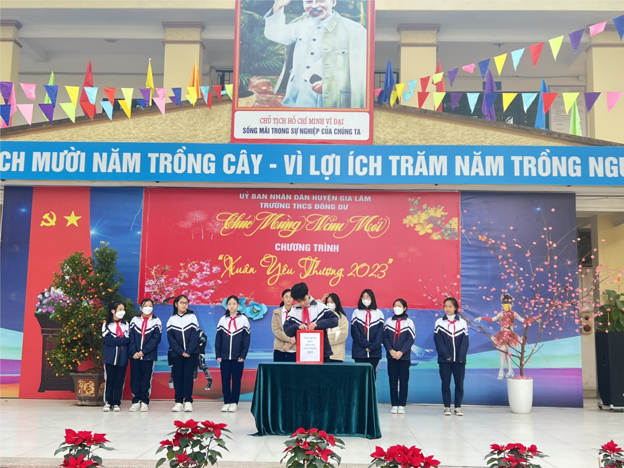 Thực hiện chương trình công tác Đội và phong trào thanh thiếu nhi. Căn cứ vào kế hoạch số 09 KH/ĐTN ngày 06/03/2023 về việc tổ chức các hoạt động hưởng ứng chương trình "Tháng 3 biên giới" "Hành trình về Địa chỉ đỏ” xây dựng công trình thanh thiếu nhi tại một số điểm có học sinh hoàn cảnh khó khăn trên địa bàn biên giới tỉnh Hà Giang. Được sự nhất chí của BGH nhà trường, Liên đội THCS Đông Dư tổ chức gây quỹ " Tháng 3 biên giới" tới các em học sinh và các đ/c cán bộ giáo viên trong nhà trường. Mỗi em học sinh tiết kiệm một bữa sáng. Đây là hoạt động ý nghĩa, thiết thực, thể hiện tình cảm, trách nhiệm của Thiếu nhi Gia Lâm, góp phần đoàn kết với học sinh đang sống và học tập tại các điểm trường biên giới của Tổ Quốc.