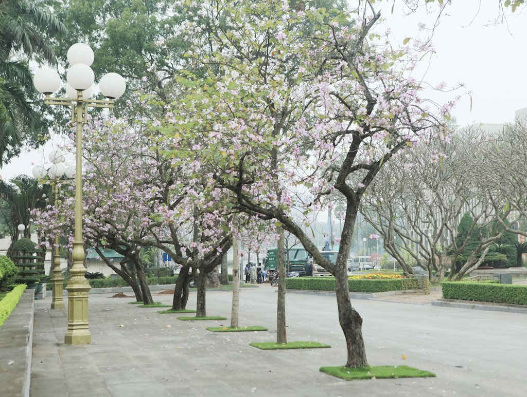 Màu sắc dịu dàng của hoa ban như xua tan cái âm u, xám xịt của thời tiết Hà Nội.