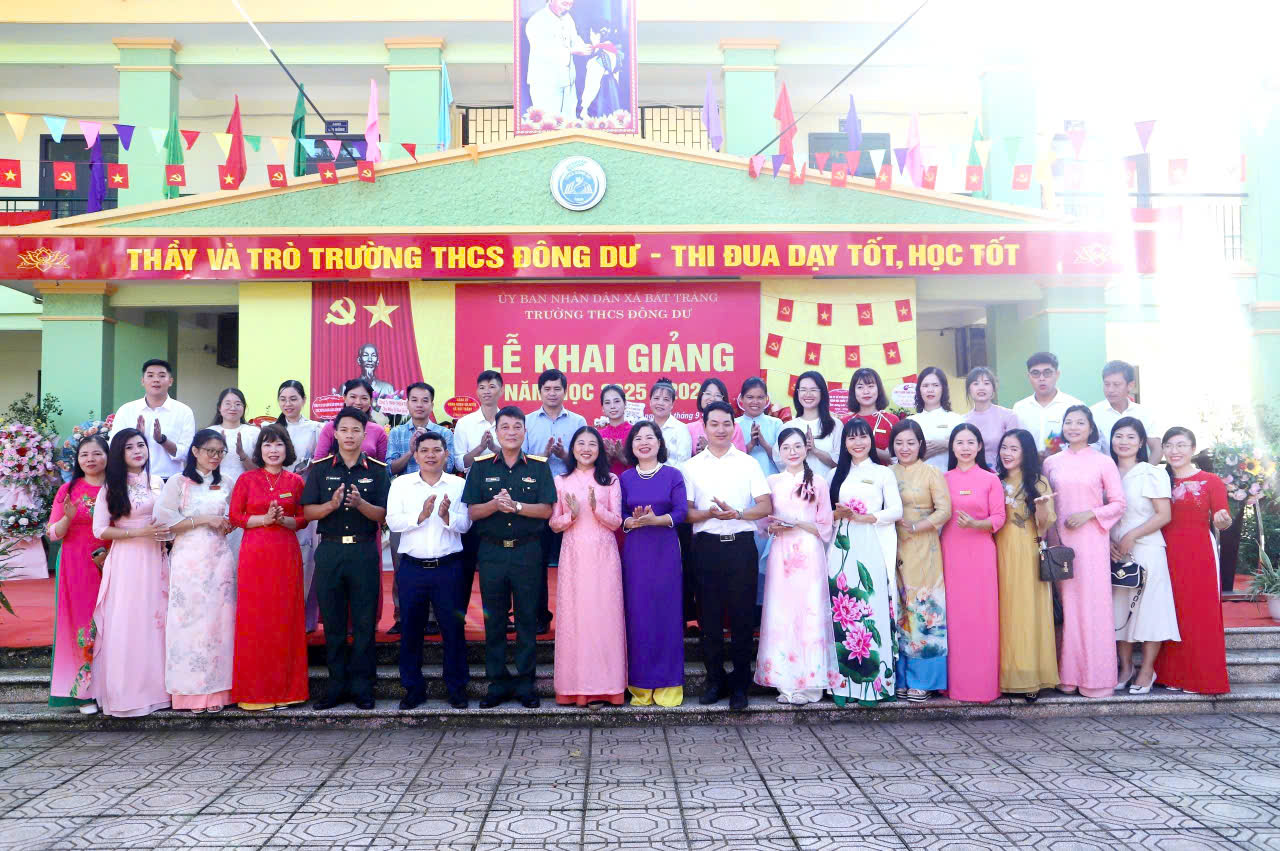 Đến dự động viên, chung vui cùng thầy và trò Trường THCS Đông Dư có sự hiện diện của các đồng chí lãnh đạo, các quý vị đại biểu, các vị khách quý : Bà Phạm Thị Thu Hoài- Đảng ủy viên, phó chủ nhiệm- Uỷ ban kiểm tra Đảng ủy xã Bát Tràng. Anh Nguyễn Hồng Quang- Bí thư Đoàn TN xã Bát Tràng cùng các đại biểu địa phương, các ban ngành. Tham dự buổi lễ là sự có mặt đông đủ của các thầy cô giáo, cán bộ nhân viên cùng gần 500 em học sinh toàn trường .