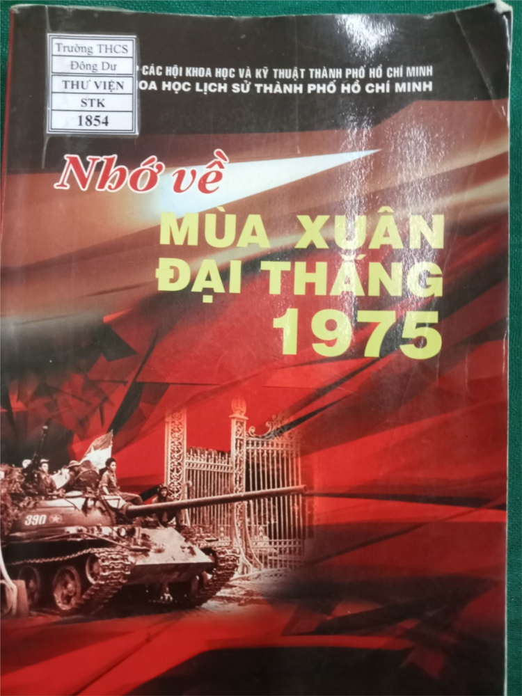 Nhằm hưởng ứng Ngày sách Việt Nam và kỉ niệm Ngày giải phóng Miền Nam thống nhất đất nước (30/4/1975 - 30/4/2024), thư viện trường xin trân trọng giới thiệu đến thầy cô cùng các em học sinh cuốn sách “ Nhớ về mùa xuân đại thắng 1975”.