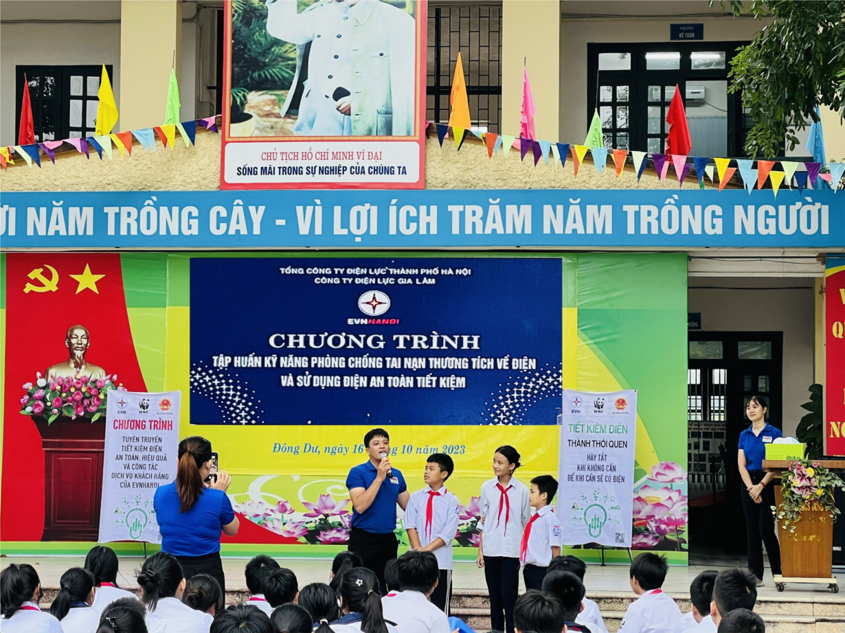 Nhằm tuyên truyền và nâng cao ý thức , trách nhiệm của học sinh trong việc sử dụng điện tiết kiệm hiệu quả; cũng như các kỹ năng cơ bản để xử lý các tình huống mất an toàn về điện xảy ra, giúp đảm bảo an toàn tính mạng cho các em học sinh và những người xung quanh, được sự chỉ đạo của BGH nhà trường phối hợp với công ty điện lực Gia Lâm, trường THCS Đông Dư đã tổ chức tập huấn kỹ năng sử dụng điện an toàn- tiết kiệm vào sáng ngày 16/10/2023